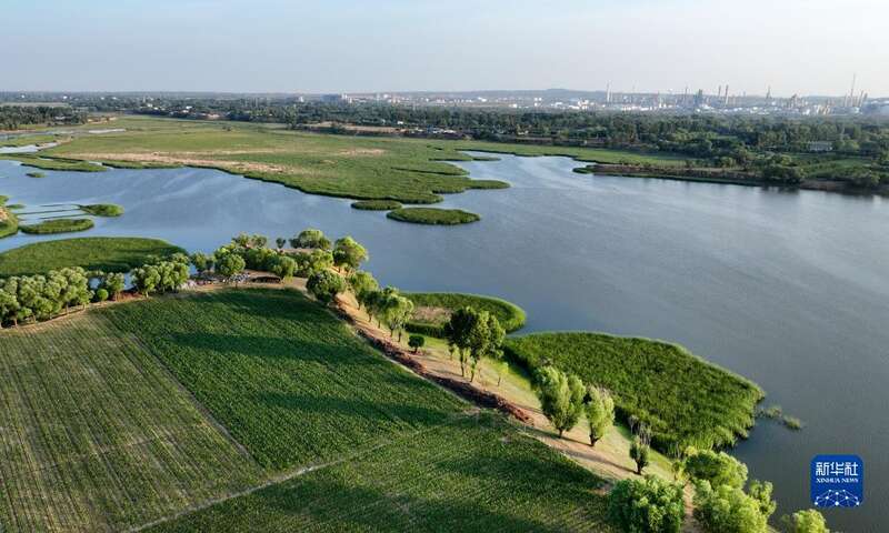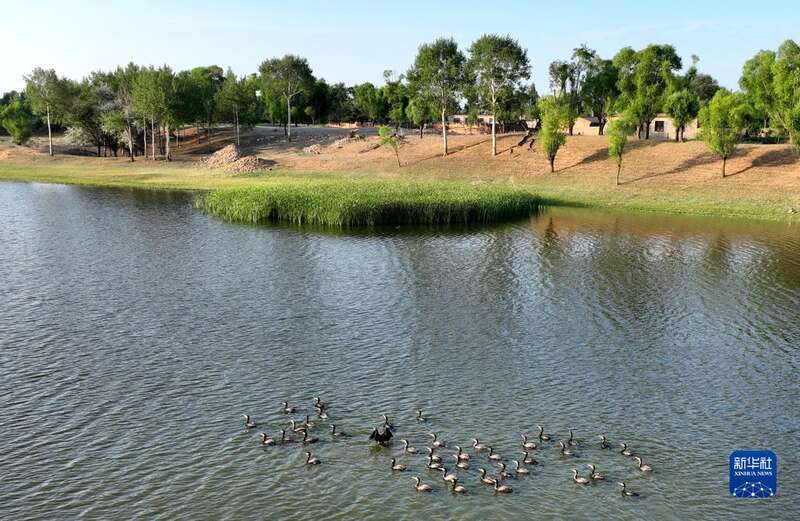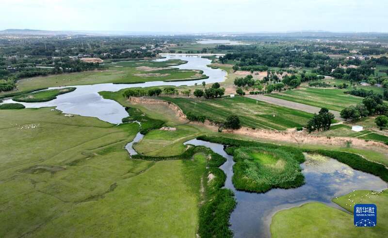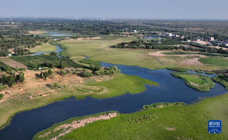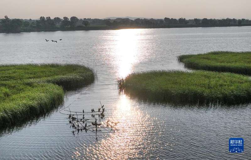 6月20日,一群水鸟在芦河栖息(无人机照片)。