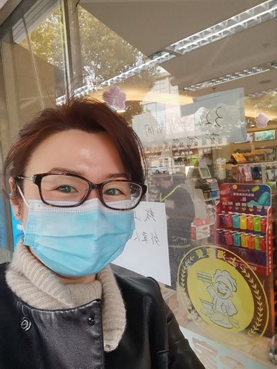 疫情封控期间,施政代表难得敲开了一家店门,自拍了一张。