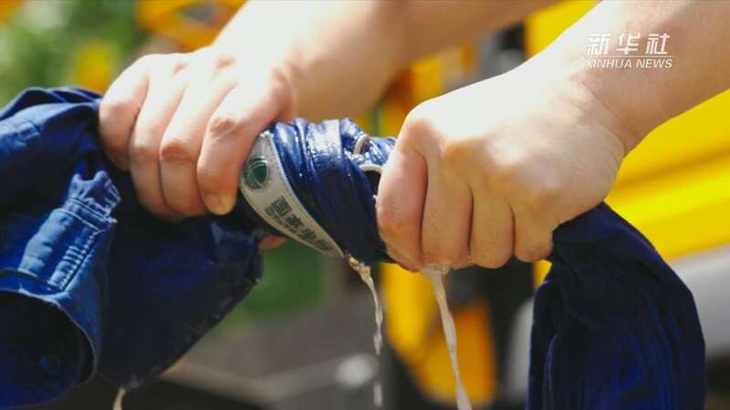 阳光暴晒下的绝缘斗臂车已经热得烫手,作业人员穿戴带电作业服、绝缘靴、绝缘手套、安全帽等8公斤重的全套设备作业,仅绝缘服厚度就相当于6层军用雨衣。脱去防护服,作业人员从头到脚全部湿透,手套里都能倒出汗水。