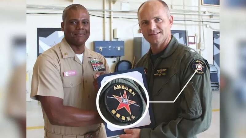 该中队还用类似方式,让“超级大黄蜂”战机“客串”过歼-15,甚至该中队队员臂章上还印有中文:棍棒和石头。