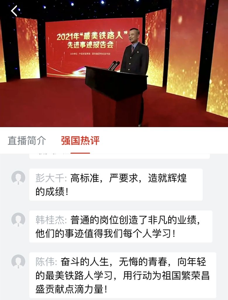 在疫情防控常态化条件下,此次报告会通过“学习强国”学习平台、央视频、全国高校思政网、人民铁道网以及共青团中央新媒体矩阵、中国青年报·中青在线新媒体矩阵、中国铁路新媒体矩阵等17个平台同步直播。来自全国各地的网友实时留言互动,深切感受铁路人在新时代新征程中的先行风采、服务本色、担当品格、奋斗精神。