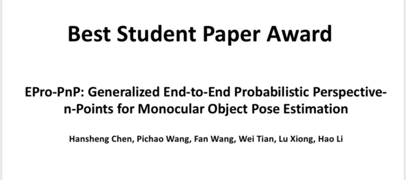 而陈涵晟同学研一就已经发布了一篇CVPR,今年直接夺得全球仅有一席的“最佳学生论文奖”。其次的最佳学生论文提名奖则由哈佛大学等夺得。