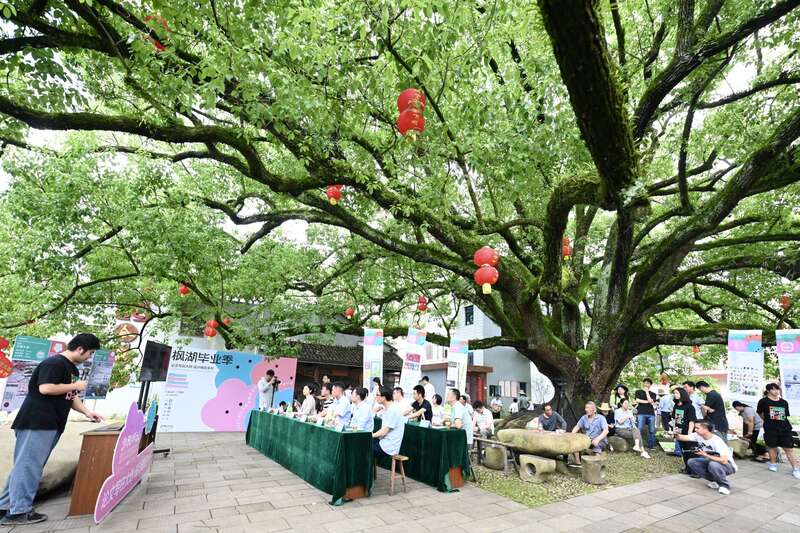 自今年2月起,来自沪浙苏皖12所高校设计院系师生团队深入宁海县岔路镇湖头村、下畈村,将毕业设计“写”在乡村田间地头,用毕业设计方案、成果与村民对话。东华大学服装与艺术设计学院教授陈庆军说,与其他毕业设计不同,“我在枫湖做毕业设计”是探索村民“导师”+高校导师+企业导师,从学术探究、商业价值、方案落地等角度,针对毕业设计提出具体问题和建议,从单纯的毕业设计转变为项目的落地。