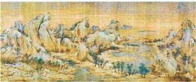 宋 赵伯驹《江山秋色图》(局部)。此图与王希孟《千里江山图》,堪称中国青绿山水画绝世双璧。