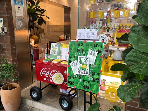 “有点‘焦绿’,特别‘焦绿’,你看这个好玩。”6月24日中午,武康路上,两名年轻女孩说说笑笑地走到Plusone咖啡门口,指着“绿码咖啡”的文案觉得有意思。
