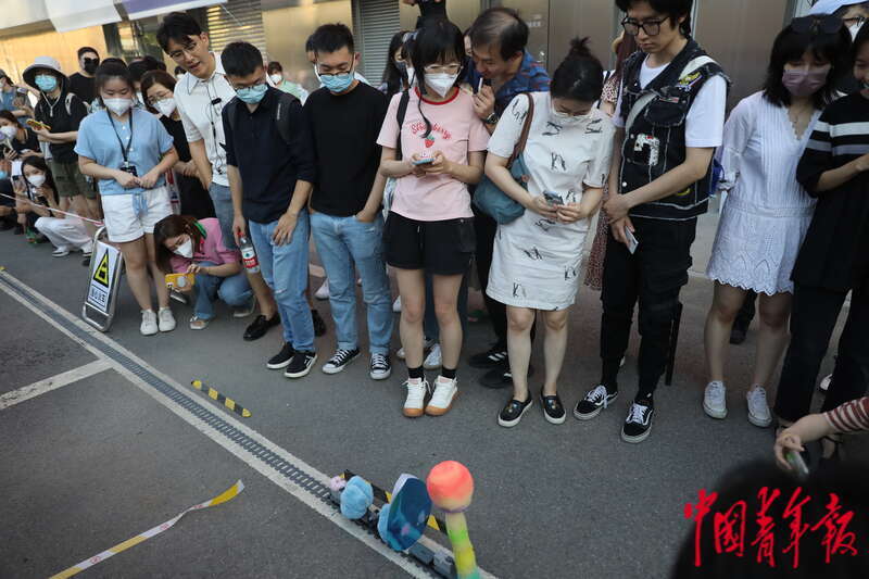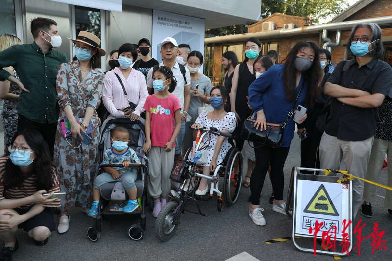 6月24日,北京798艺术区,人们在参观画廊周北京2022公共单元特别项目“共同的‘专列’”。画廊周期间,特别开设了“迷你”火车“专列”,搭载8位当代艺术家以不同媒介创作的艺术作品,在以798艺术中心为起点铺设的轨道上行驶,探索公共空间容纳艺术的新可能性。中青报·中青网记者 孔斯琪/摄
