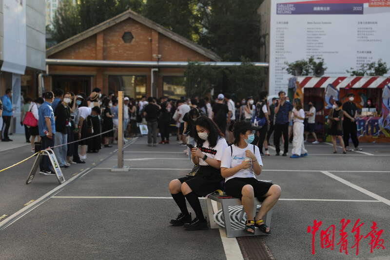 6月24日,北京798艺术区,前来观展的年轻人。中青报·中青网记者 孔斯琪/摄
