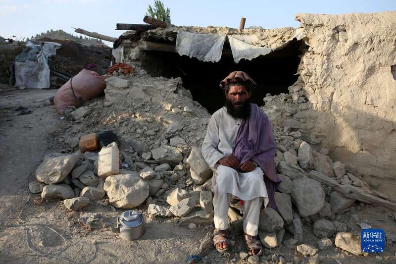 6月26日,在阿富汗霍斯特省,一名男子坐在废墟旁。