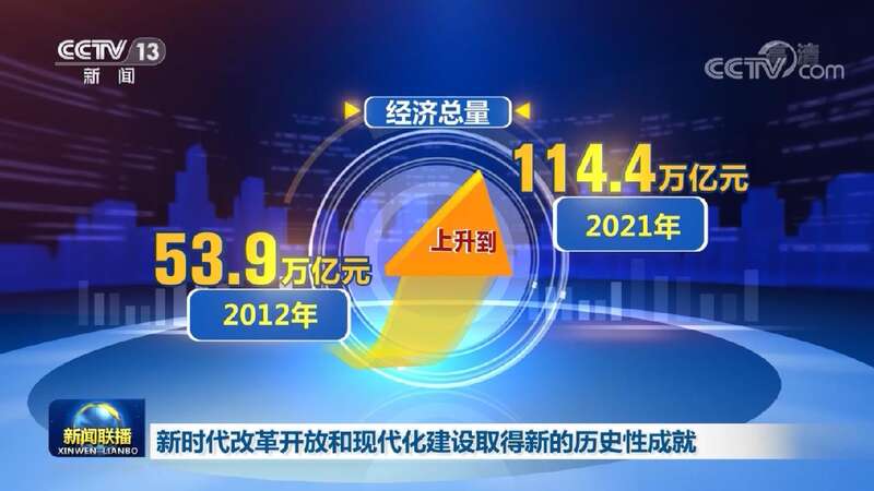 这十年,我国经济实力跃上新台阶。经济总量由2012年的53.9万亿元上升到2021年的114.4万亿元,占世界经济比重从11.3%上升到超过18%,人均国内生产总值从6300美元上升到超过1.2万美元。