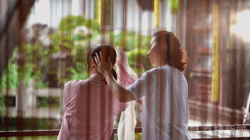 刘煜永远都记得那个很热的夏天,老师带着她坐地铁转公交赶到江苏省昆剧院破旧的排练厅。没有空调,电扇吱嘎作响,没有搭戏的其他演员。为了排练好《牡丹亭·离魂》“集贤宾”一折,张继青充当搭戏的演员,又当“杜母”,又当“春香”,在练功房左右跑,陪着刘煜反复地练。“她那个时候都要快80岁了,那一折戏演到后面要跪在地上,她也不管自己的身体,就全身心投入陪着我排。”