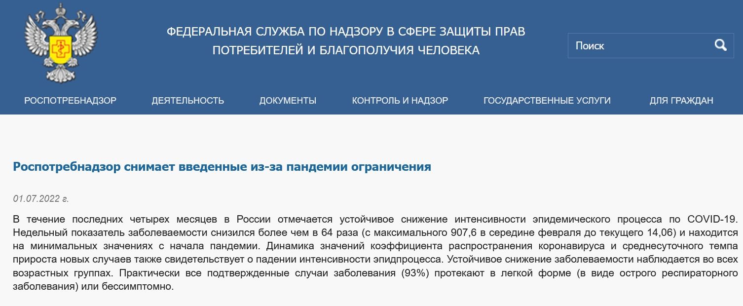 (观察者网讯)当地时间7月1日,俄罗斯联邦消费者权益保护和公益监督局新闻处宣布取消所有防疫限制措施,包括口罩制度、禁止夜间堂食等。