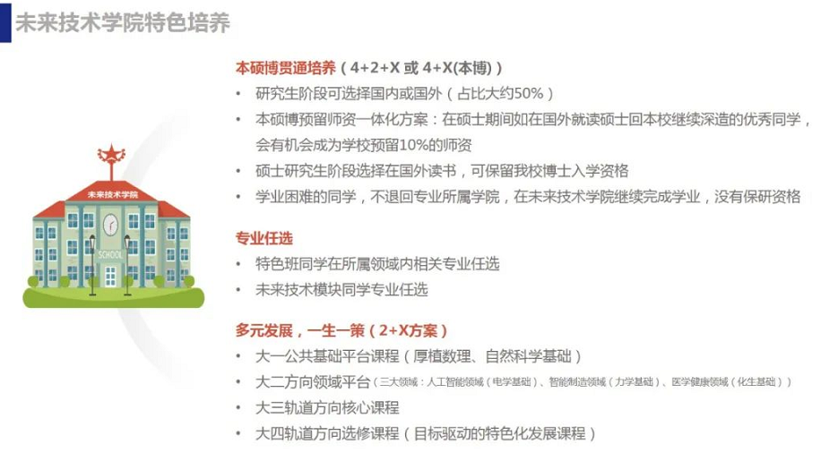 学校37个高端科研创新平台全部面向未来技术模块学生开放,帮助学生更早了解国际学术前沿。为学生提供科创专项经费支持。