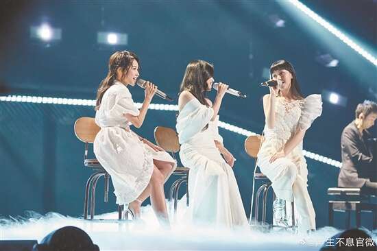 与炎明熹和安崎的合作也让我感受颇深。我跟炎明熹在TVB就认识,在她身上看到了曾经的自己。我们都非常喜欢唱歌,而且恰好可以靠唱歌养活自己。她曾在一个节目里说,希望自己能多挣点钱养家,我入行的时候也有同样的想法,非常理解她。至于安崎,我之前一直追看她参加的选秀节目,见证了她过五关斩六将,当时就觉得她好厉害。从她身上,我也看到了内地年轻人在追求梦想时的笃定和坚毅。香港和内地的文化的确不太一样,内地年轻人更加能吃苦。