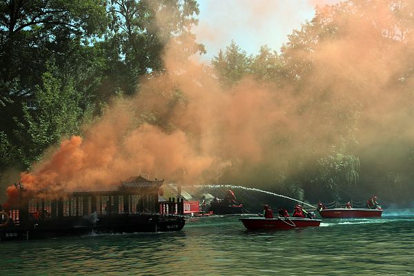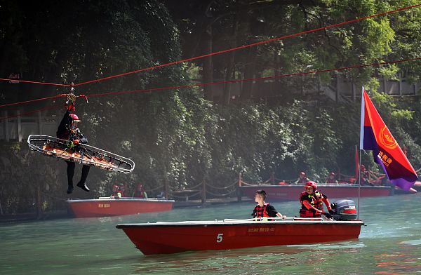 演练立足“实装实景、实战实练”,分为现场救援科目演示、救援装备运用展示、抗洪抢险实战演练三个阶段展开。演练现场,全体参战人员迅速行动、协同配合,分别进行了舟艇快速组装、舟艇编队行进、O型救援、活饵救援、桥降救生、翻艇自救、无人机抛投救生、水上飞翼救援、水陆两栖车救援、岸基抛绳救援、登船救援、船艇火灾扑救、T型救援等13个科目的实战演练。公安、交警、医疗、气象等部门立足职能定位,分别完成了交通管制、院前急救、气象监测等协同作战任务。