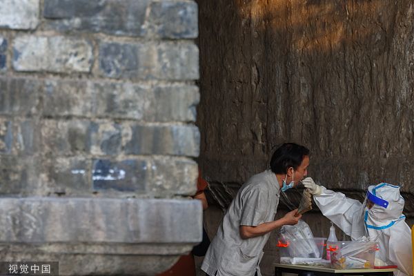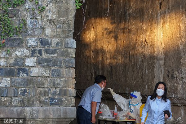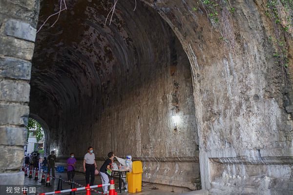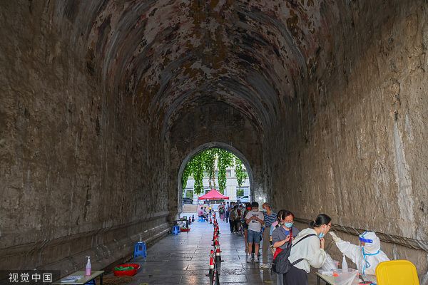 2022年6月30日,南京,市民在鼓楼公园内设立的核酸检测点进行核酸检测。6月30日,南京市卫生健康委员会发布的信息显示,6月29日17时至30日8时,该市新增新冠肺炎本土确诊病例4例,新增本土无症状感染者1例,均为集中隔离发现。连日来,当地各区加快核酸检测,全力减少疫情影响。 中新社记者 泱波 摄