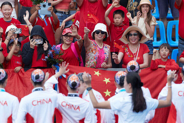 世锦赛开赛以来,大批华人华侨到现场加油助威。他们中除了自发前往的观众外,还有一支华人啦啦队。他们的热情点燃了赛场的激情,甚至让人有身处中国队“主场”的感觉。