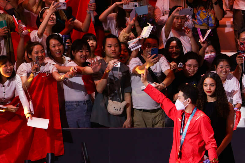 赛后的多瑙河体育馆外,延续着欢乐的氛围。许多华人华侨久久不愿离去,希望能与完赛的中国运动员签名合影。