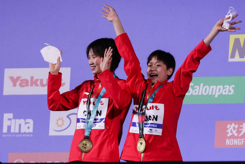 6月30日,陈芋汐(左)/全红婵在颁奖仪式上。新华社记者郑焕松摄