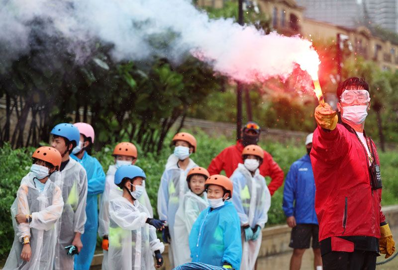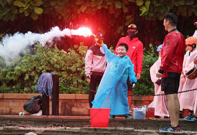 7月2日,受台风暹芭的影响,惠州合正东部湾海域风大浪急,出海训练项目受阻,刘明安排小水手们在近海浅海湾里进行了海上求救信号发射、海上船只翻覆、海上伤员营救等项目的训练。