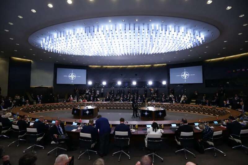 6月16日,与会人员在比利时布鲁塞尔的北约总部出席北约成员国国防部长会议。新华社记者郑焕松摄