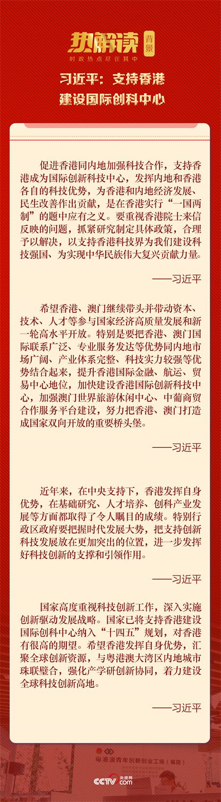 “国家已将支持香港建设国际创科中心纳入‘十四五’规划,对香港有很高的期望。”6月30日,习主席专程前往香港科学园考察,为香港着力建设全球科技创新高地指明方向。
