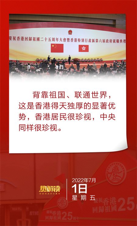 在庆祝香港回归祖国25周年大会暨香港特别行政区第六届政府就职典礼上,习主席明确表示:“中央政府完全支持香港长期保持独特地位和优势,巩固国际金融、航运、贸易中心地位。”