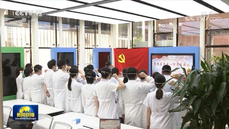 在中国共产党成立101周年之际,童朝晖带领新入党的年轻医生重温入党誓词。