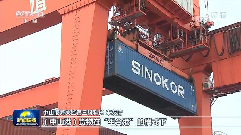 中山港海关监管三科科长 朱友清:(中山港)货物在“组合港”的模式下,只需要一次申报、一次查验、一次放行,运抵蛇口港后,就能直接换装大型国际航行船舶出口,大幅缩减了通关时间。