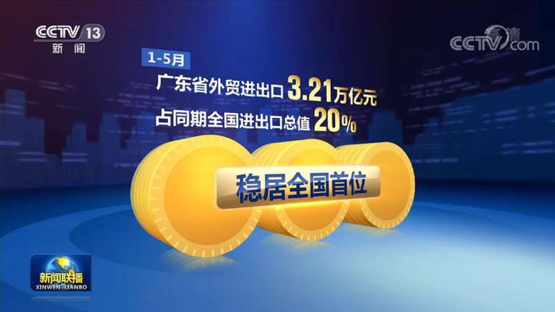 数据显示,1月至5月,广东省外贸进出口3.21万亿元,占同期全国进出口总值的20%,稳居全国首位。
