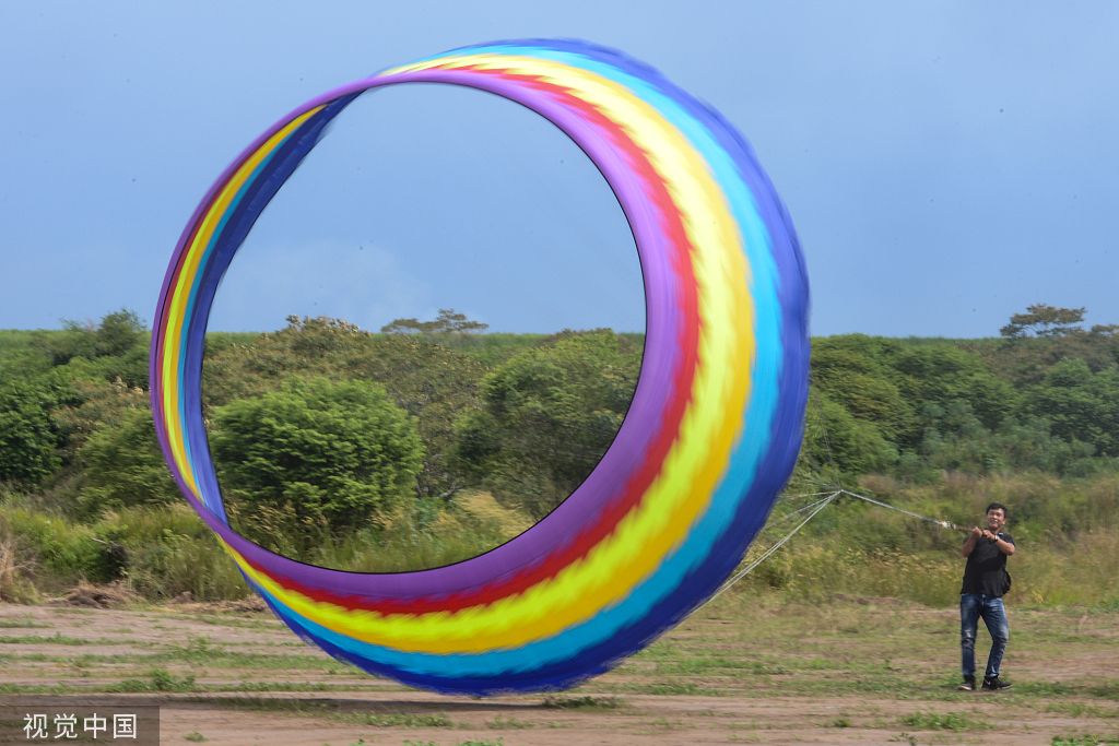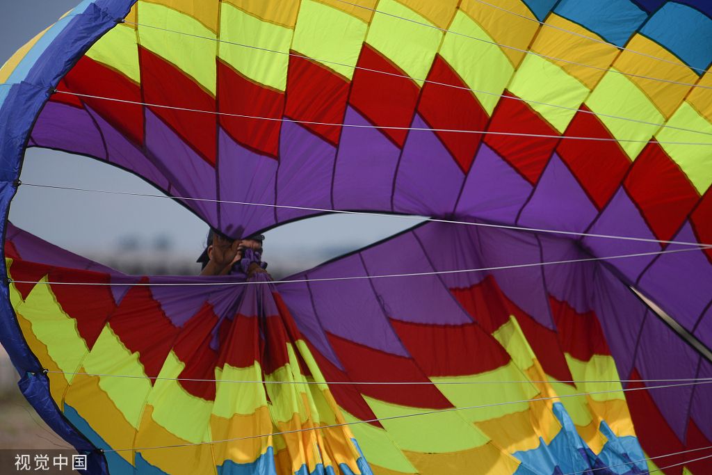当地时间2022年7月5日,印尼南苏门答腊岛,第六届南苏门答腊岛国家休闲体育节的参与者们放飞风筝。