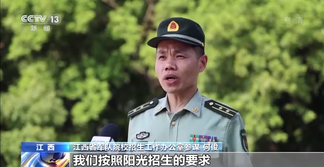 江西省军队院校招生工作办公室参谋 何俊:我们按照阳光招生的要求,选聘考生家长、人大代表、纪检机关现地督导,真正为国防和军队建设选拔优秀人才。