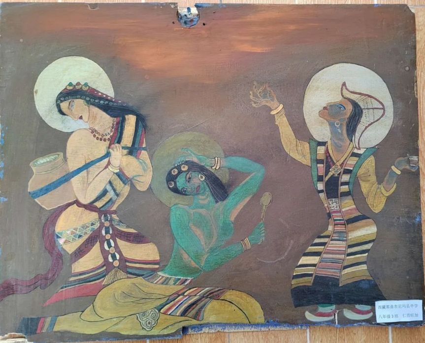 一等奖获得者仁青旺加,来自西藏那曲尼玛县中学,陈聿东评委点评其作品《沐浴节》(初一至高一组):