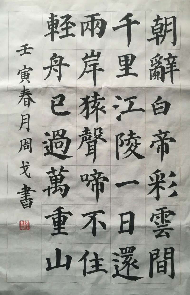 书法特别奖获得者周戈,来自河南罗山县楠杆镇初级中学,陈聿东评委点评其作品《书法:早发白帝城》(初一至高一组):