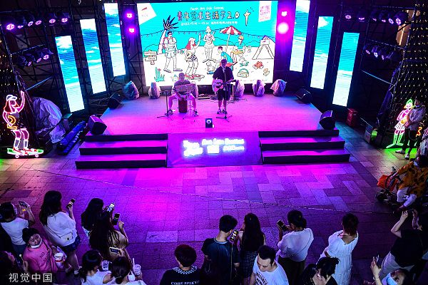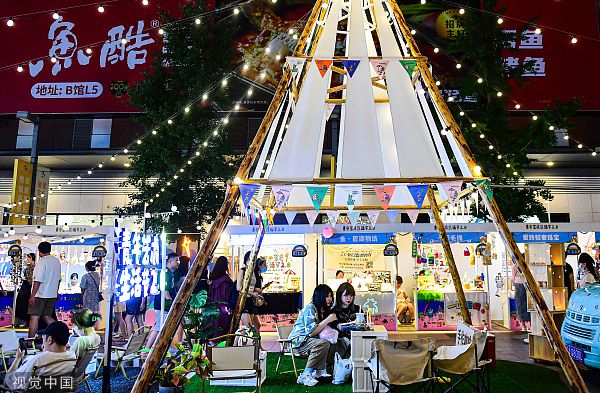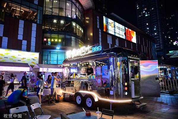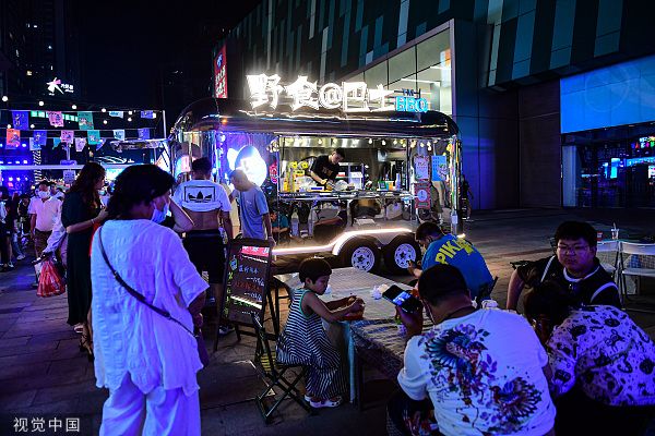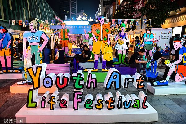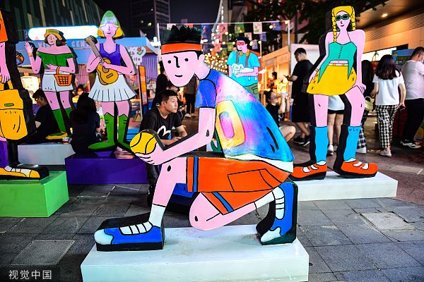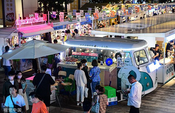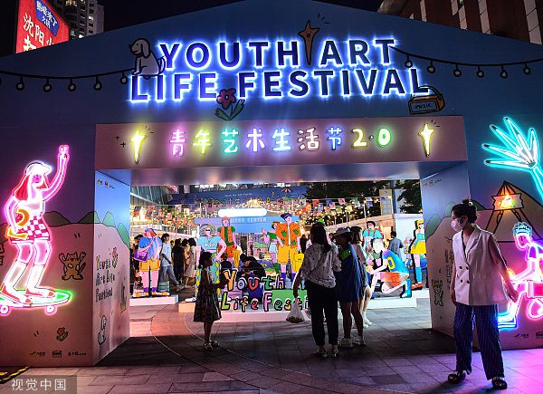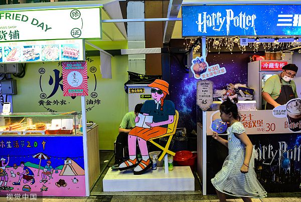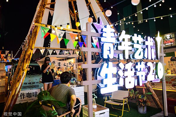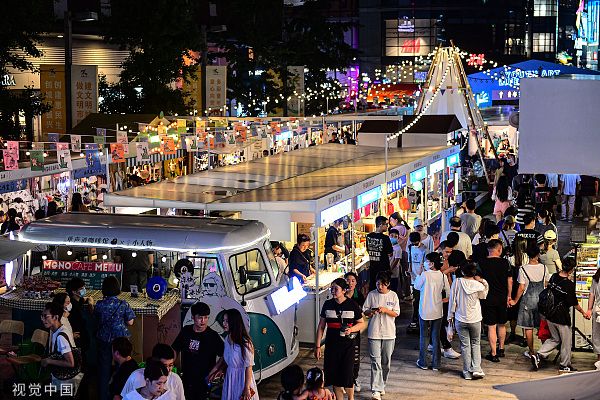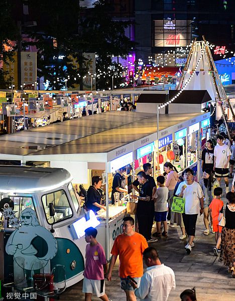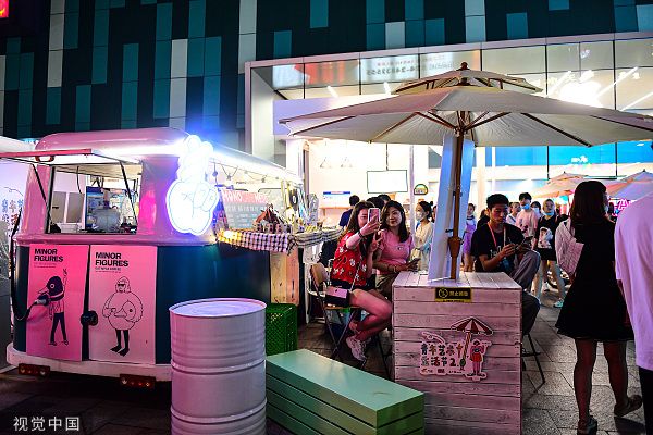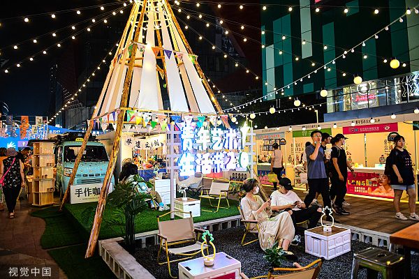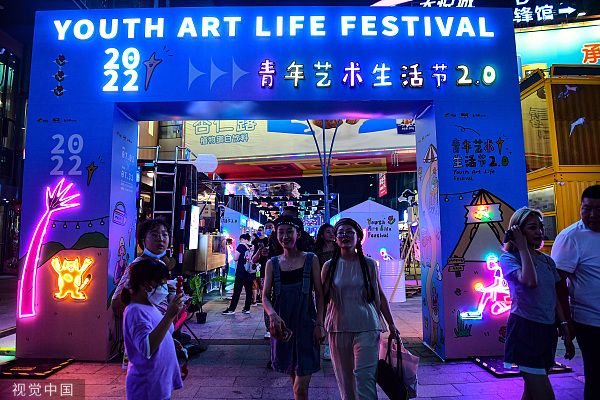 2022年7月8日,沈阳,市民在东中街商业街“青年艺术生活节2.0”主题活动中消费休闲。