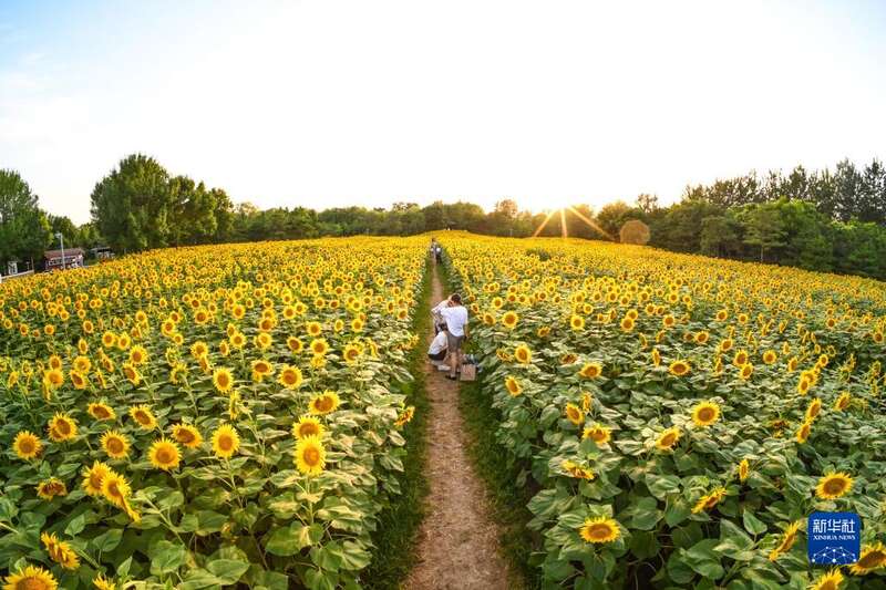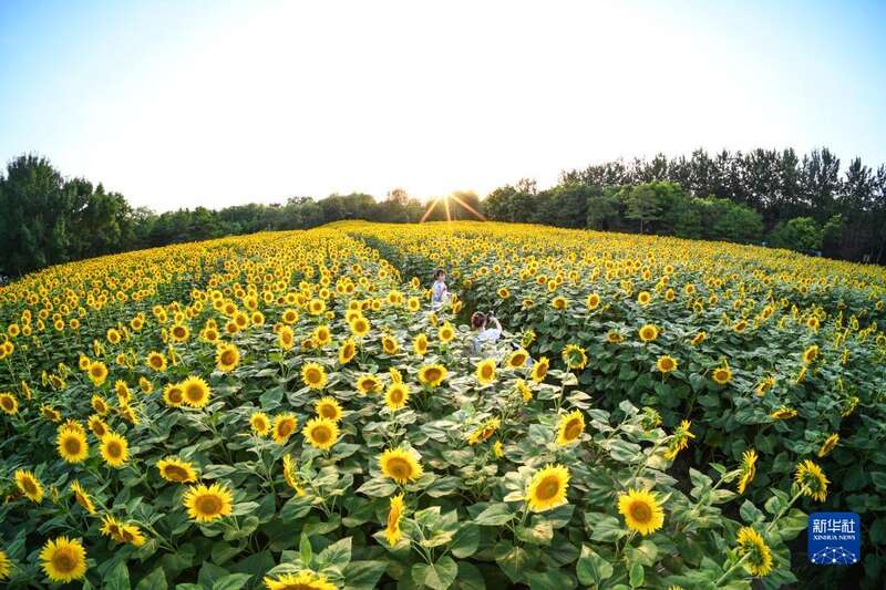 日前,北京奥林匹克森林公园北园的向日葵进入盛花期,向日葵花海在阳光下绚烂夺目,众多市民和游客来此打卡拍照。