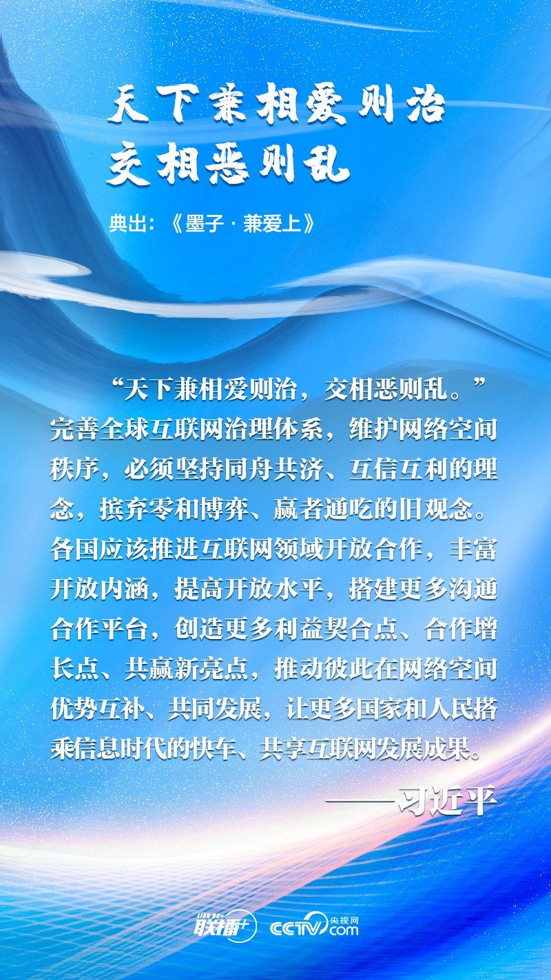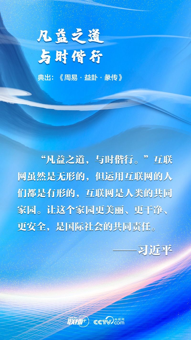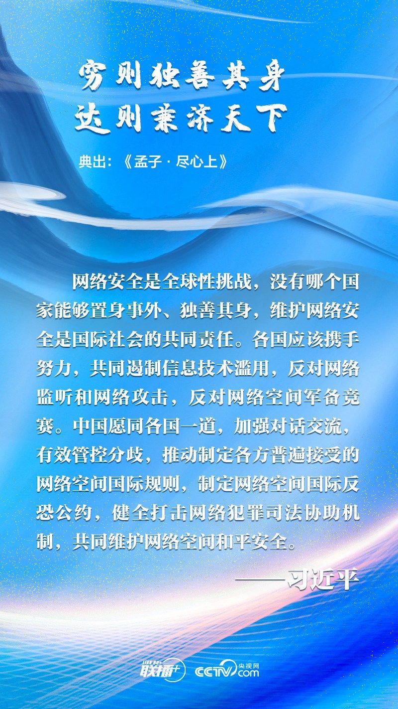 “网络空间是人类共同的活动空间,网络空间前途命运应由世界各国共同掌握。各国应该加强沟通、扩大共识、深化合作,共同构建网络空间命运共同体。”