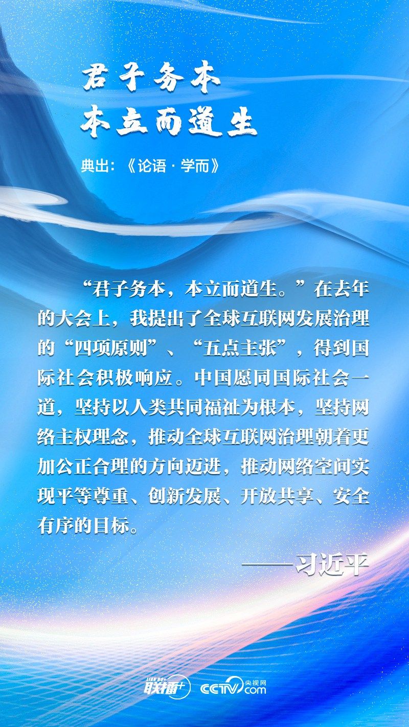 党的十八大以来,习近平主席倡导构建网络空间命运共同体,并多次引经据典阐释这一理念。央视网《联播+》栏目特梳理相关内容,与您一起感受用典的历史高度和深刻内涵。
