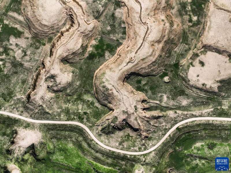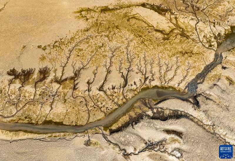 近日,随着黄河小浪底水利枢纽汛前调水调沙的结束,黄河小浪底库区水位下降,大面积河床裸露出水面,河水在河床上冲刷留下的痕迹形成黄河“沙画”。