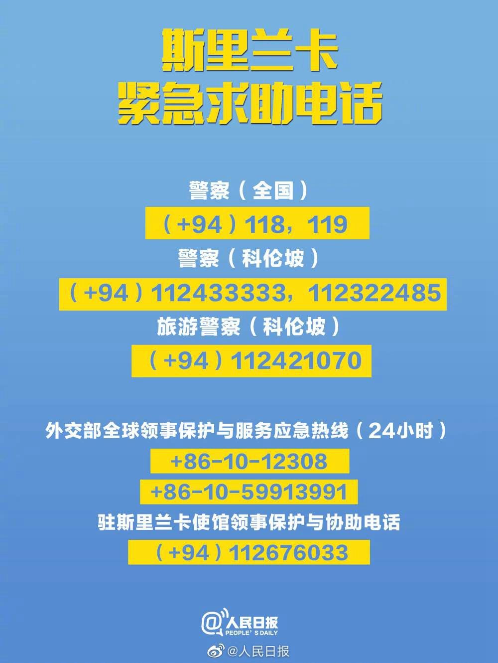 驻斯里兰卡使馆领事保护与协助电话:(+94)112676033