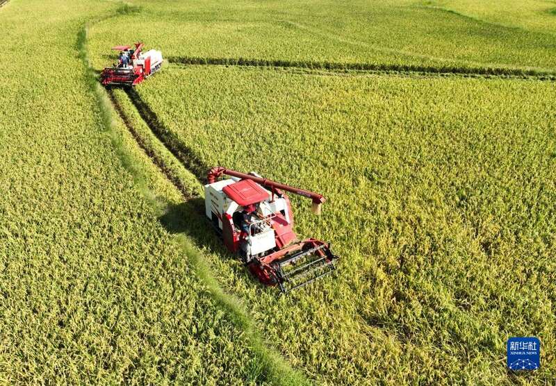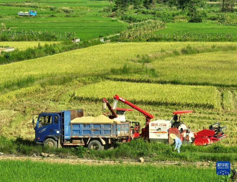 正值早稻收割时期,湖南省永州市道县采取机收主导、人工结合方式,抢收早稻。