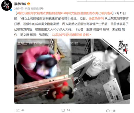 近日,一段疑似母女被男子拖进屋内的监控视频在网上流传,引发舆论关注。视频上显示的事发时间为2022年7月6日18时19分左右。