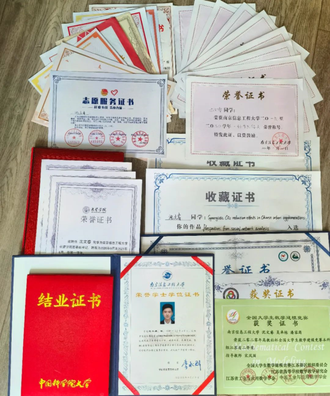 大三下学期是沈文睿最紧张忙碌的时候。作为第一届联培班学生,保研道路上没有直系学长学姐们给予经验,这条道路只能自己摸索着前行。投递材料、线上线下面试、参加夏令营……在一系列的未知中,他的心理处于极不稳定的状态,头发都白了不少,“当时心态很容易崩溃,常常想放弃,连考研的书都买好了”。