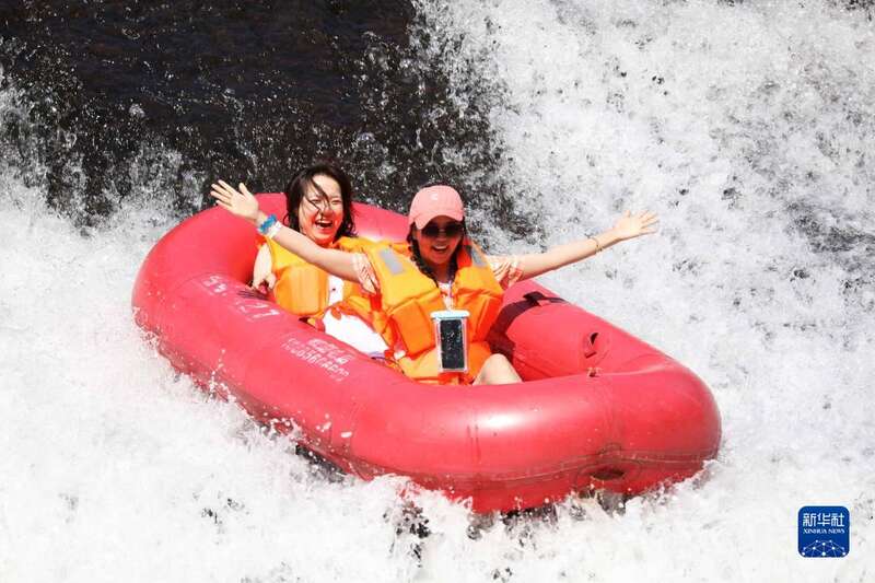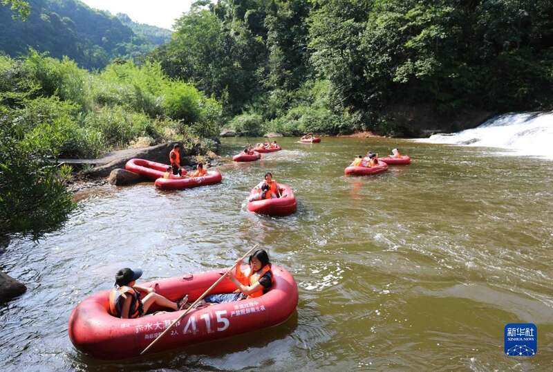 近日,随着气温升高,贵州省赤水市香溪河上的漂流景区吸引众多游客前来漂流戏水,乐享清凉。近年来,赤水市两河口镇黎明村在香溪河上开发漂流项目,当地村民通过入股分红、在景区务工、开办农家乐吃上“旅游饭”,实现增收。