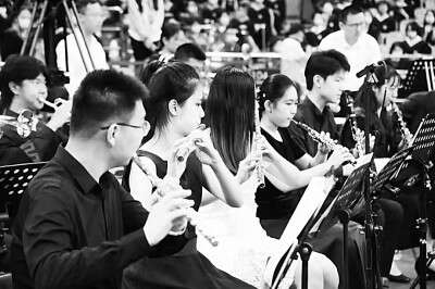 北京大学毕业典礼暖场演出管弦齐鸣、歌声悠扬。资料图片