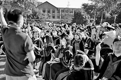 中国人民大学毕业典礼草地歌会现场,同学们在一起合唱。资料图片