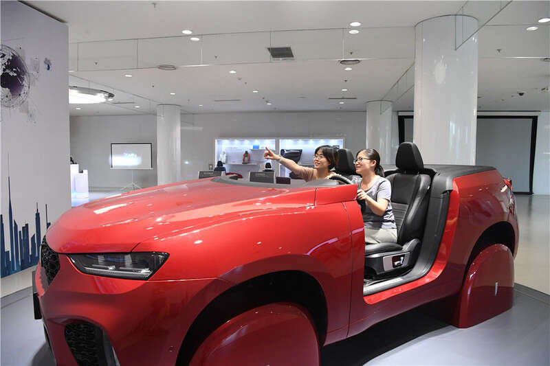 在河北保定市长城汽车哈弗技术中心,参观者在体验5G智能驾驶(2021年7月15日摄)。新华社记者 朱旭东 摄