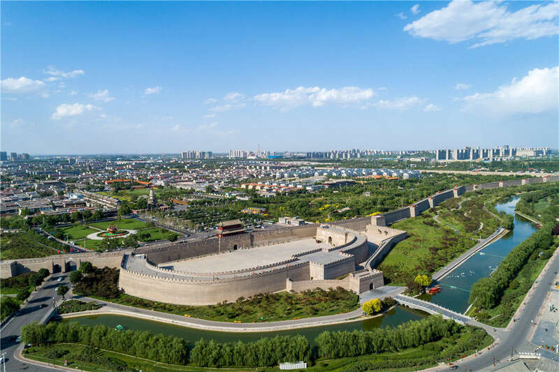 蓝天白云掩映下的河北正定古城(2021年6月4日摄,无人机照片)。新华社记者 朱旭东 摄