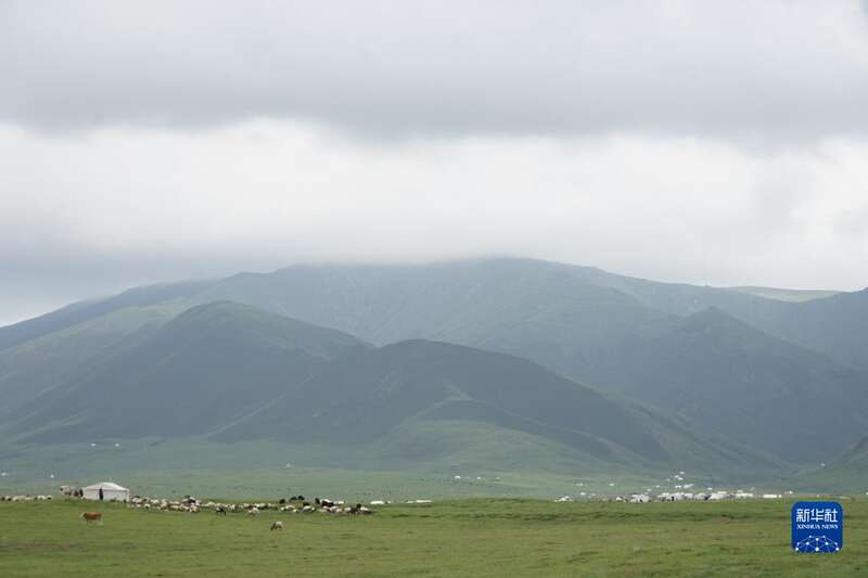 进入7月,青海省降雨增多、气温升高,蓝天、白云、田野、牛羊……处处呈现田园牧歌般的美丽景象。新华社记者 王大千 摄