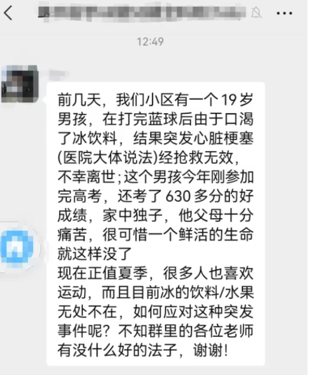 今年19岁的小辉(化名)刚参加完今年高考。在考试后,他每天都坚持打篮球锻炼身体,而在每次运动后,流了一身汗的他习惯喝一瓶冰镇饮料。