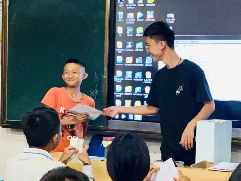 当看到第一节课起哄捣乱的孩子地理成绩从个位数到及格;听到学生们每节上课都要问“老师你什么时候走,我们要去送你”;收到孩子偷偷发给他消息说:“你对每一个学生都很好,这么好的老师很难遇到了”时,他深刻地体会到,志愿不是一味地付出,而是双向的奔赴。他暗自承诺:要为这群孩子们带来更多的收获,为他们创造更多的价值。